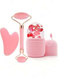 3pcs Ice Massage Roller Set - Facial Cooling Massage Roller, Facial Massage Tool, Silicone Ice Massage Roller, Rose Quartz Roller Massager With Gua Sha Board, For Relieving Facial And Eye Puffiness, Facial Massager, Contour Shaping, Skin Care And Radiance, Suitable For Eyes, Neck And Face, Ice Massage Roller Mold Cube - Skincare Tools. Summer Ice Massage Products, Office Supplies, Study Supplies, Travel Essentials #1 Bestseller
