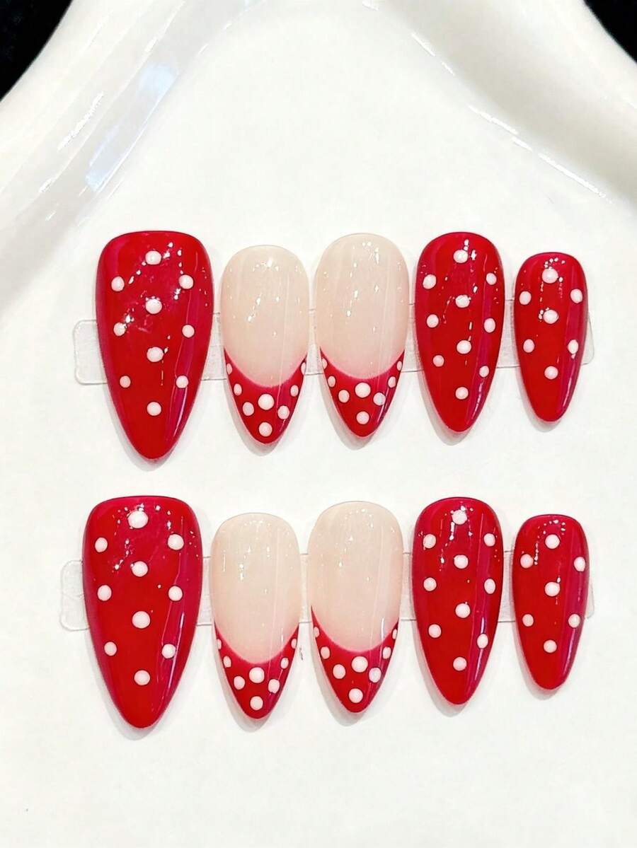 10PCS Almond Handmade Press On Nails For Party And Daily Wear ,Red Nails,Red And White Dot Contrast,Easy To Wear10pcs Y2K Handmade Press On Nails,Suitable For Girls And Women Festivals Parties And Daily Wear