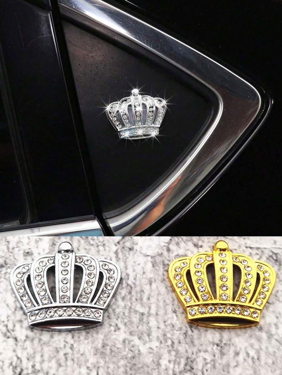 1Pc Metal Crown Style Emblem Sticker - Shiny Decoration For Car Interior & Exterior, Unisex Automotive Accessories, High-Adhesion Waterproof Design, Easy Install Upgrade Parts