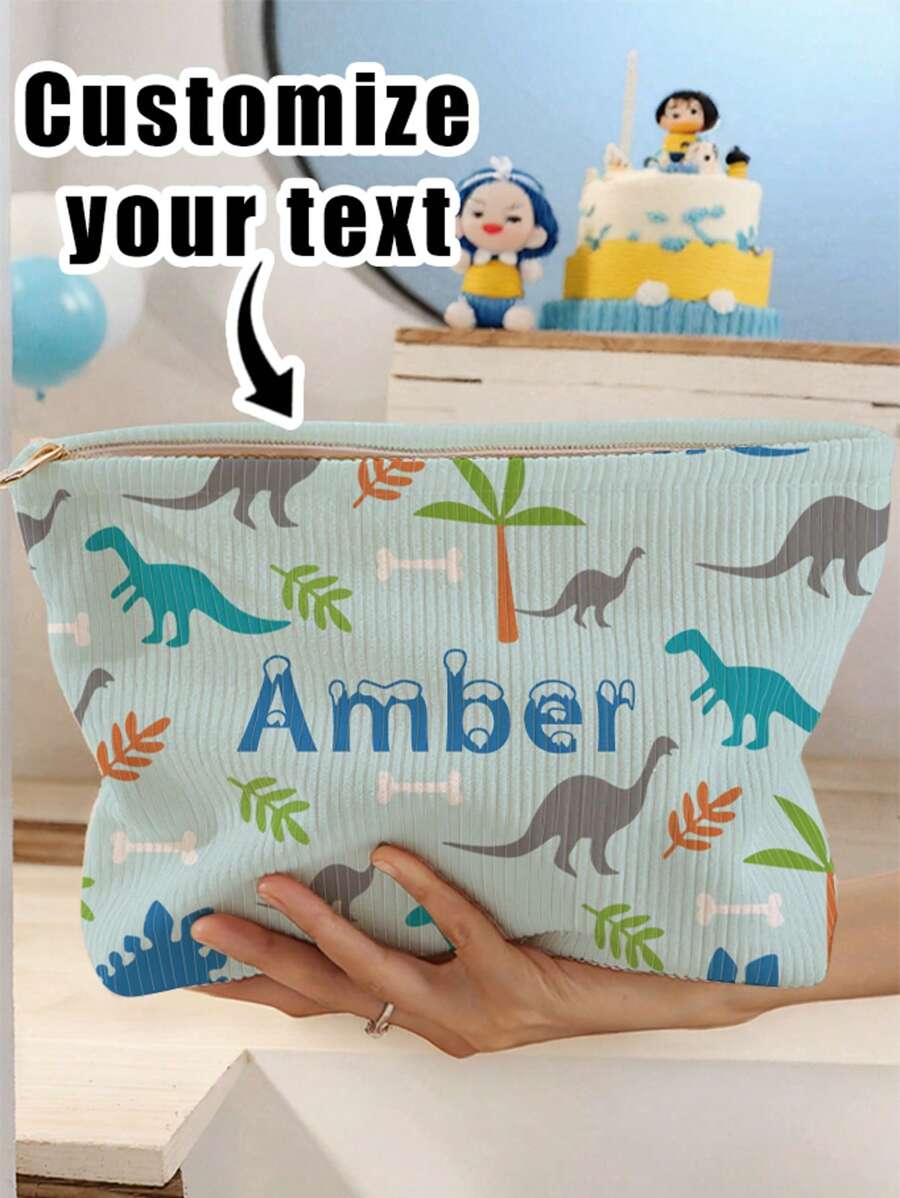 1pc Customized Name Pattern Corduroy Toiletry Bag, Excellent Choice For Organizing Toiletries For Travel, Can Be Customized According To Your Unique Design, Very Suitable For Children And Teenagers, Print Your Own Name Or Print Sister And Classmate's Name As A Gift