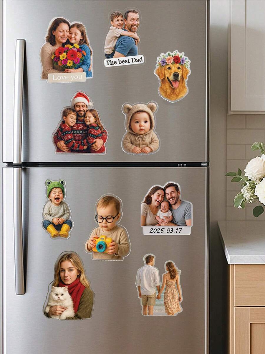1pc Customized Photo Refrigerator Magnet, Personalized Family Photo Gift, Children Photo Fridge Magnet, Custom Refrigerator Magnet, Funny Cat/Dog Photo Fridge Magnet, Asymmetrical Acrylic Refrigerator Magnet, Warm, Cute, Special Home Decor, Personalized Gift, Anniversary Gift, Special Gift, Holiday Gift