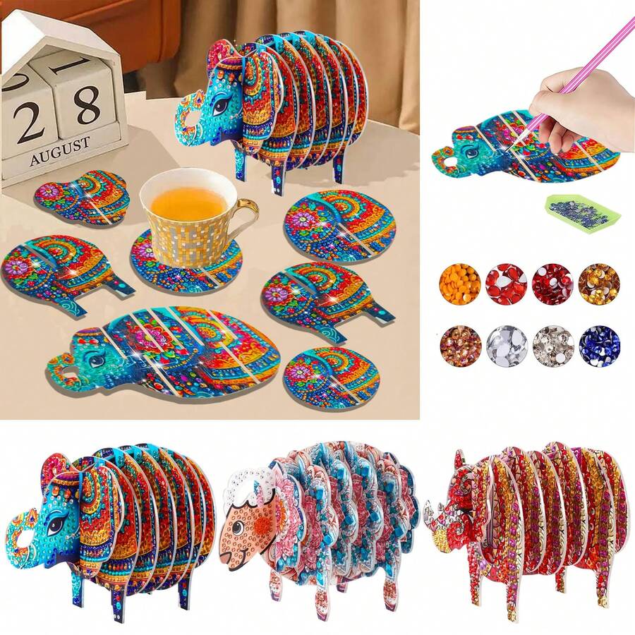 1pc DIY Diamond Painting Kit, Animal Shaped Coaster, Acrylic Material With Crystal Bead Mosaic Decor, Desktop Decoration Craft, Suitable For Home, School, Office Desk, Great Gift For Friends And New Year