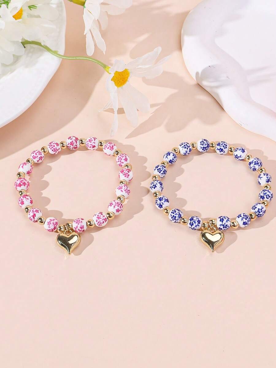 1pc Heart Pendant Ceramic Bead Bracelet, Women/Couples Everyday/Holiday Accessory