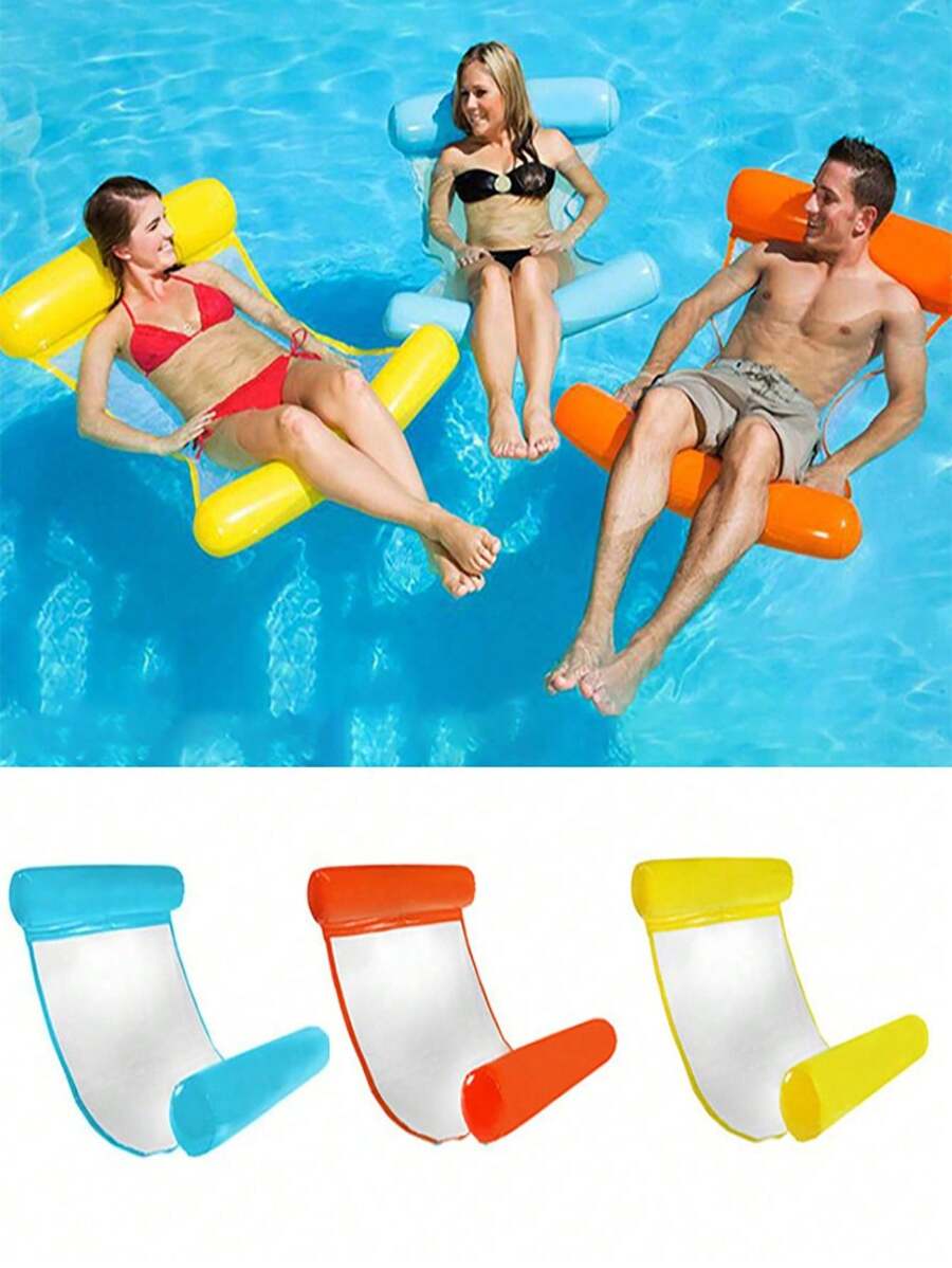 1pc Inflatable Hammock With Mesh Bed, Can Be Folded Into Swimming Ring/Backrest Floating Board, Water Leisure Bed & Sofa Pool Float, Beach Essentials, Beach Accessories