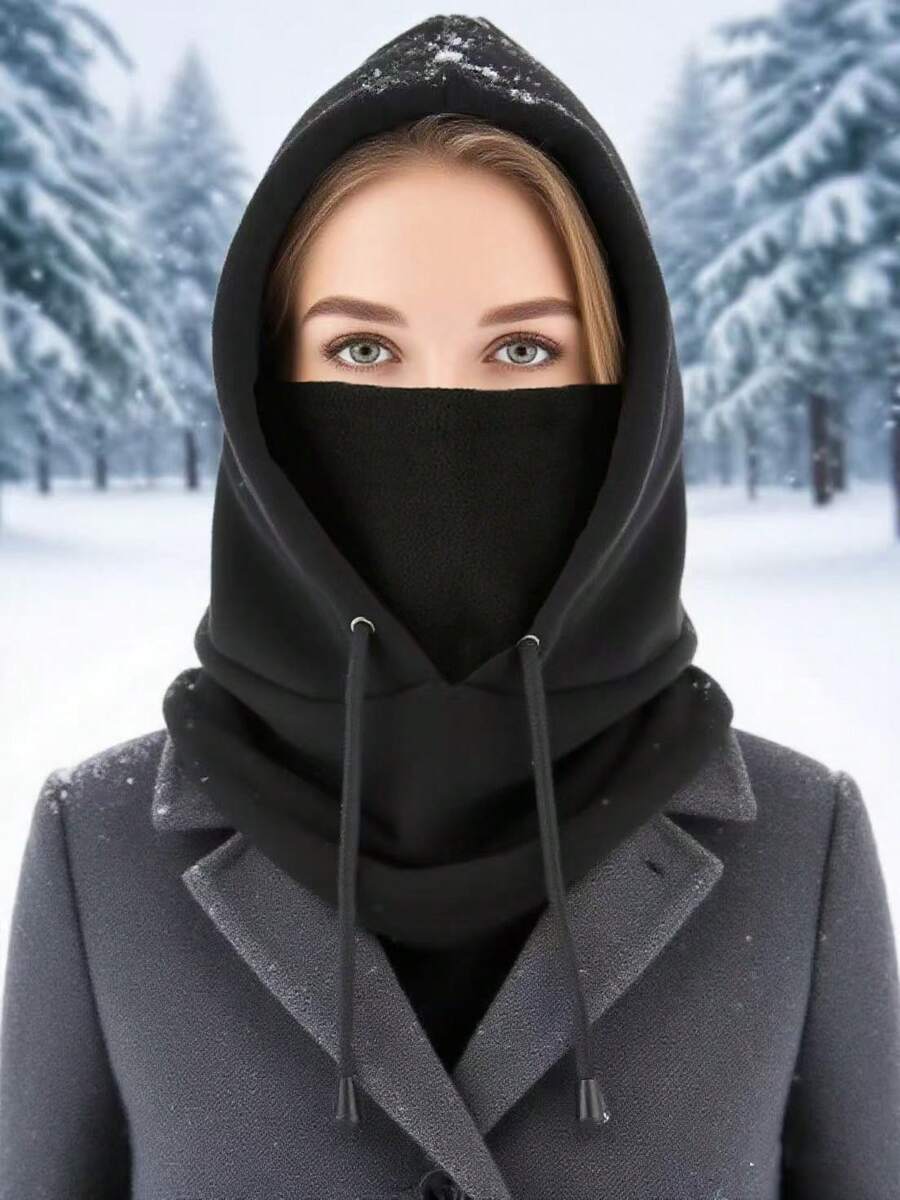 1pc Winter Elegant Versatile Double-Layer Cashmere Drawstring Balaclava Hat, Windproof Ski Face Mask, Solid Color Bicycle Neck Gaiter For Outdoor Cycling, Fishing, Running, Racing, Sports, Hiking And Daily Wear, Unisex Autumn Accessories