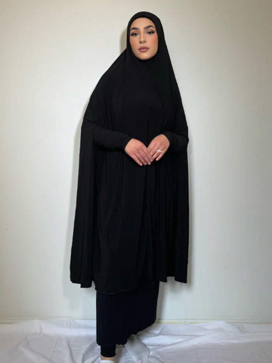 1pc Women Abaya Accessories Plain Soft Large Size Cover Chin Prayer Hijab, For Pilgrimage, Turban Headscarf With Sleeves Headband