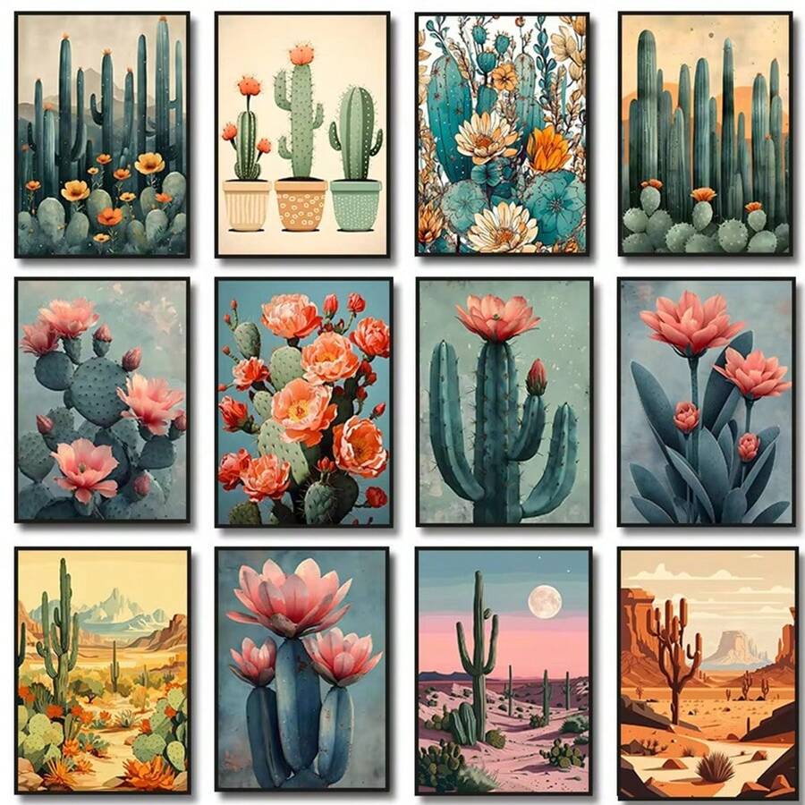 1pc/3PCS Wall Art Posters Plant Vintage Mexican Cactus Poster, Floral, Moon Aesthetic, Canvas, Colorful Artwork, Wall Art Painting, Room Home Decoration Frameless/Framed Canvas Art