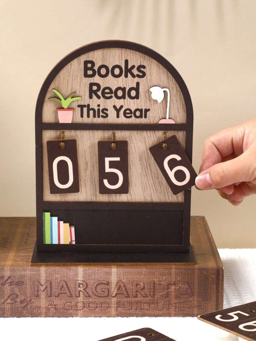1 Set Wooden Annual Reading Tracker Decor - Can Record 999 Books, Coffee Color Annual Reading Tracker, Office Decor, Living Room & Bedroom Decor, Study Space Decor, Bookshelf Decor, Cabinet Decor, Desk Decor, Retro Decor, Bookstore Counter Decor, Room Decor, Home Decor, Gift For Bookworms, Perfect Gift For Book Lovers, Reading Challenge Gift, Home Accessory, Birthday Gift