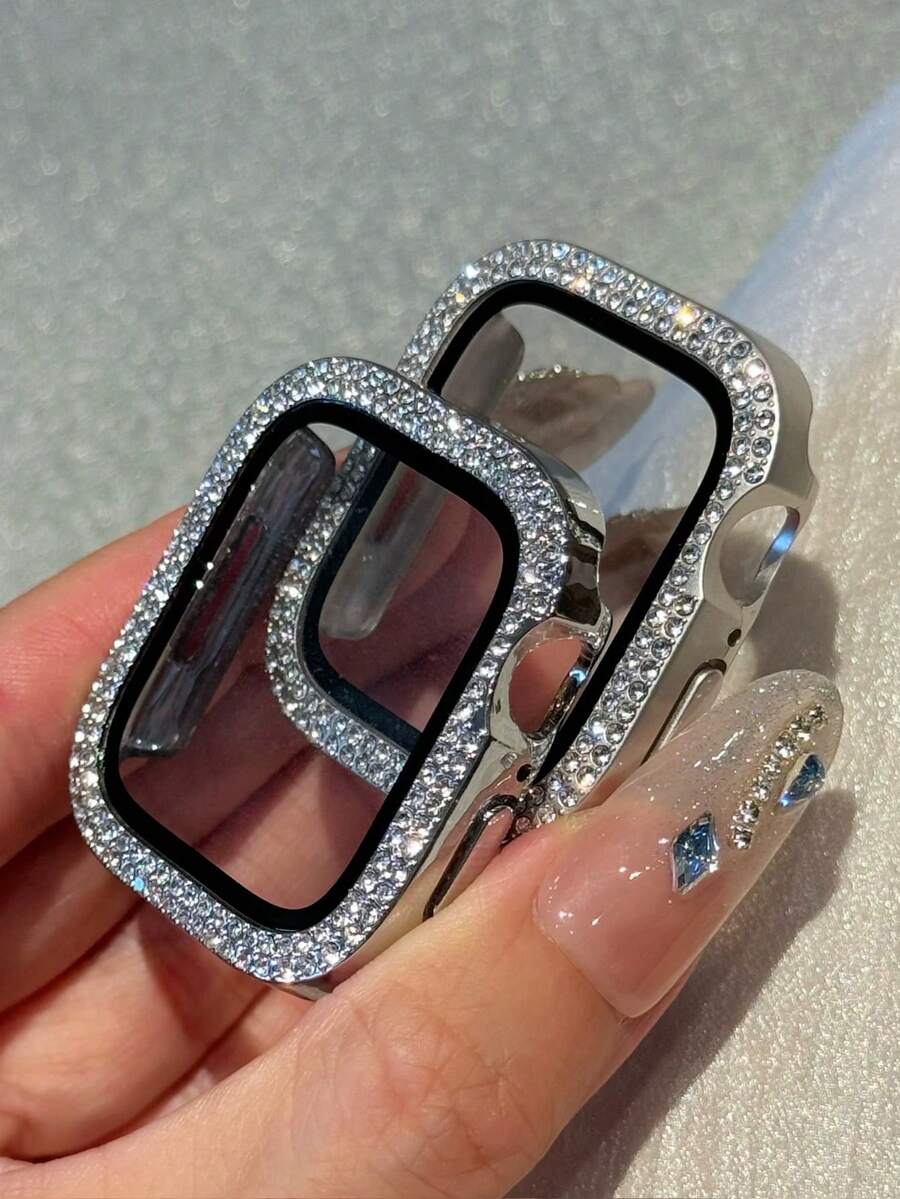 2 Packs Bling Case Crystal Rhinestone Protector Bumper With Screen Protector Compatible With Apple Watch Cover For Series Ultra/SE/11/10/9/8/7/6/5/4/3/2/1, Compatible For Apple Watch Case 38/40/41/42/44/45/46/49mm, Protective Face Cover Sparkling, Silver+Starlight Color
