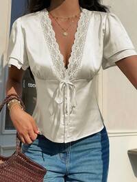 BizChic White Lapel Front Button Up Shirt, All-Match Versatile Minimalist Elegant Women's Blouse, Suitable For Commuting, Daily Wear, Romantic 90s Vintage, Christmas, New Year, Valentine's Day, Party, Beach, Graduation, Fashion, Carnival, Holiday, Wedding Guest, Brunch, Airport, Multi-Occasion #6 Bestseller