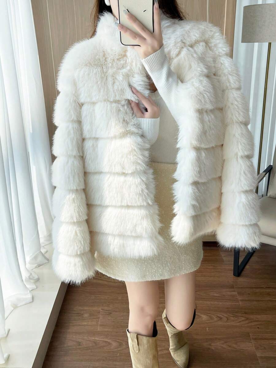 2025 Winter New Faux Fur Casual Fashion Retro Loose Long Sleeve High Collar Women Fake Fur Coat