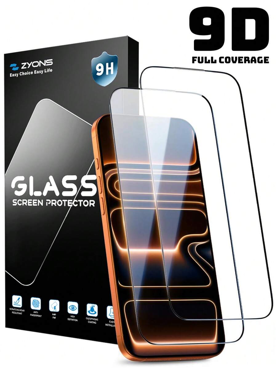 ZYONS 2pcs Tempered Glass Screen Protector Full Screen Coverage High Transparency Tempered Glass Screen Film Compatible With IPhone 17 Pro Max/17 Air/16e /16 Plus/16 Pro Max/15 Pro Max/14 Pro Max/13 Mini 12 11 Pro Max X XR XS Max Protective Glass Film, Anti-Fingerprint, Clear HD, 9H Hardness, Shockproof, Perfect Adhesion, Case Friendly