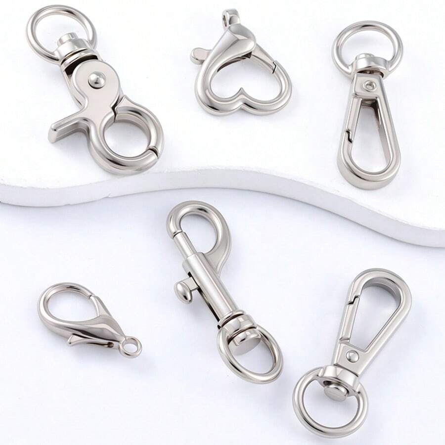 5 Pieces Of Multi-Style Heart-Shaped Lobster Rotating Keychains, Couple Keychains, Bag Buckles, Alloy Material, With Rotating Hooks, Suitable For Christmas And Love Decoration