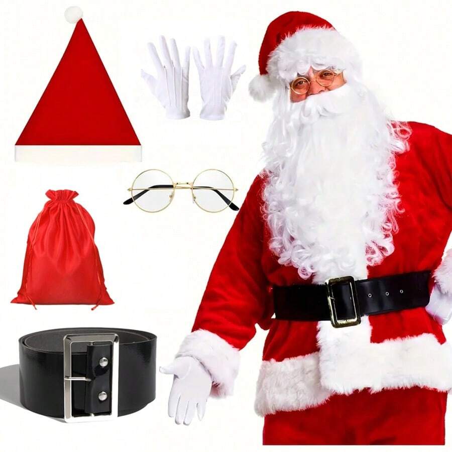 5 Pieces. Professional Santa Claus Costumes. Men's Santa Claus Outfits Include Santa Claus Hats, Gloves, Glasses, Gift Bags, Belts. Suitable As A Christmas Gift For Men. Applicable For Christmas Events Or Christmas Parties.