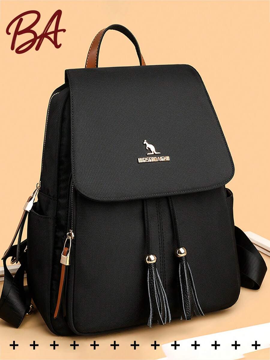 Anti-Theft Tassel Retro Nylon Flap Backpack For Women, Multi-Functional Stylish Day Bag, Multi-Pocket Lightweight Travel Bag, Large Capacity Simple School Bag, Convenient Book Bag, Suitable For Students, Nurses, Teachers, Business People, Travel And Vacation, Business Trips, Daily Commuting, Shopping, Office, Dating, Hiking, Training, Work, Birthday Gifts, Holiday Gifts