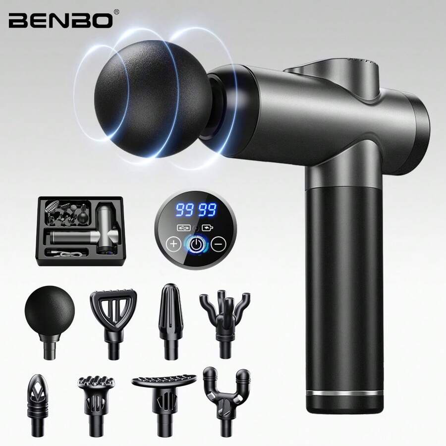 Benbo BENBO Massage Gun, Body Massage To Relieve Pain, LCD Display Comes With Multiple Massage Heads, Gray And Green. It's A Great Choice For Home, Office, Gym, Party, Christmas, New Year, Thanksgiving, As A Gift For Friends Or For Personal Use