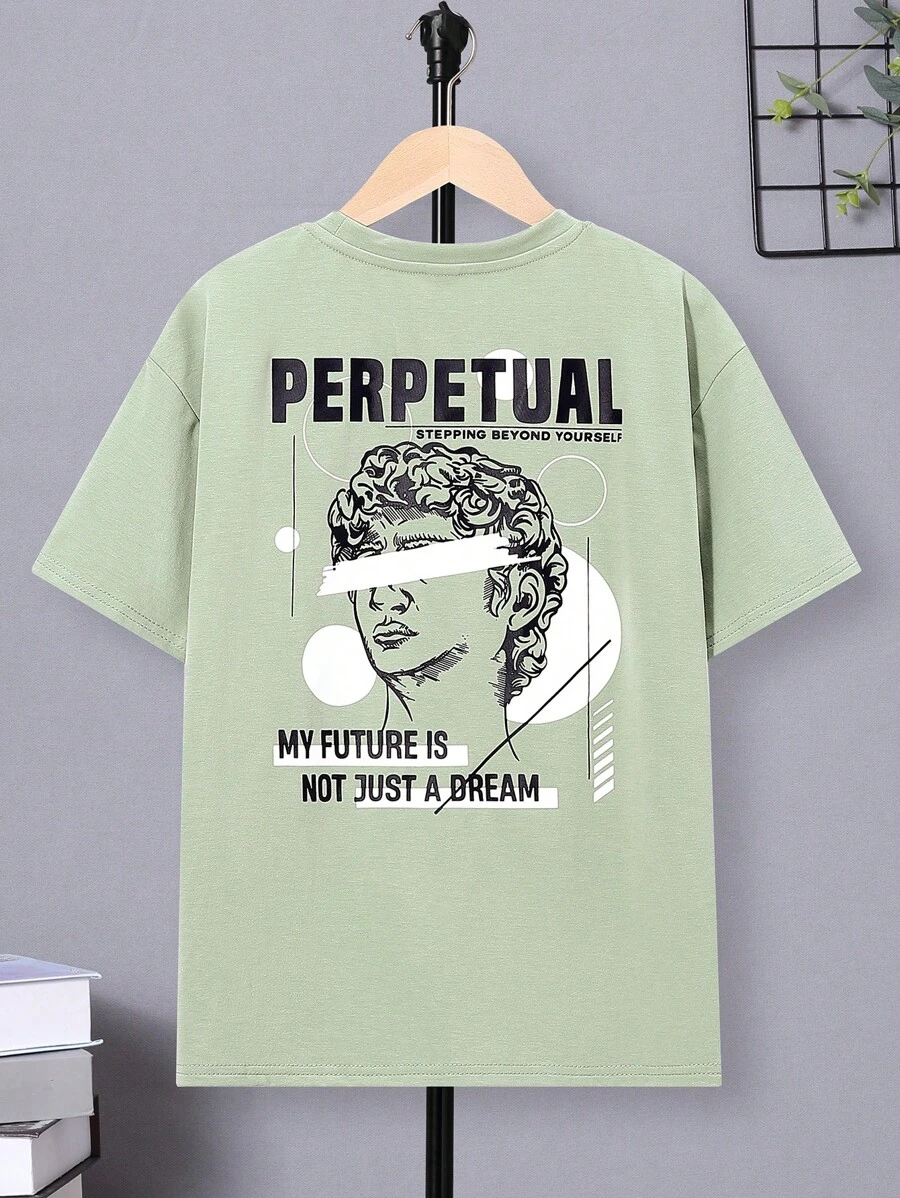 SHEIN Boys' Loose Fit Sculpture & Letter Print T-Shirt With Dropped Shoulders, Street Style