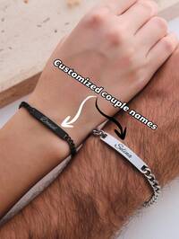 2pcs Customizable Stainless Steel Couple Bracelets, Personalized His & Hers Matching Bracelet Set, Engraving Available, Elegant & Minimalist Design, Great For Valentine's Day, Mother's Day/Father's Day Gift,Silver,Stylish,Colorful,Vintage,Simple,Unisex,Casual,Cuties,Custom,Personalized,Unique,Ideal Gifts For Him,Ideal Gifts For Her,Her,Boyfriend,Girlfriend,Dad,Mom,Family,Friends,For Anniversaries,For Birthdays,For Graduation,For Prom,For Party #1 Bestseller