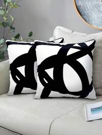 1/2/4pcs Abstract Geometric Black & White Throw Pillows - Contemporary Style, Hand Wash Only Polyester, Multiple Sizes For Sofa, Bed, Indoor & Outdoor Decor, Throw Pillows For Couch, Sofa Accessories, Smooth Texture Fabric,Fall Decor,Autumn Decor,Room Decor #1 Bestseller