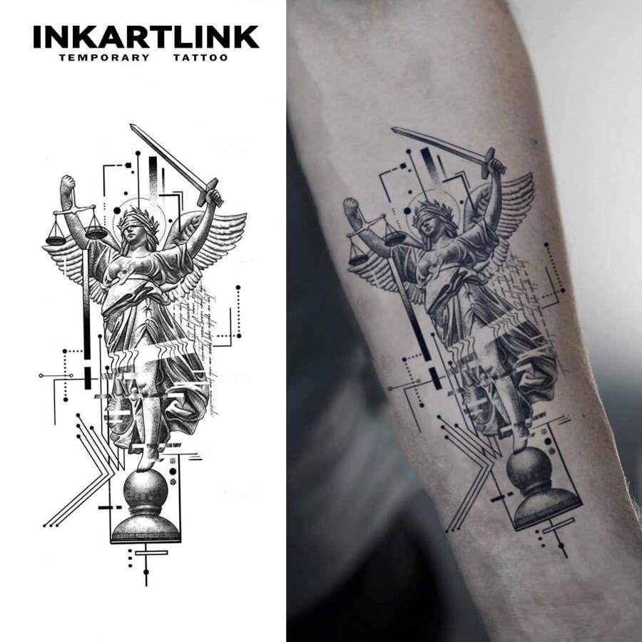 INKARTLINK INKARTLINK 8*18cm 1pc Herbal Juice Themed Temporary Tattoo - , Clock, Libra, Fortune Magic Tattoo Design, Semi-Permanent Tattoo, Realistic Fake Tattoo, Lasts 1-2 Weeks
