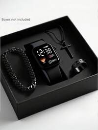 4pcs/Set Men's Business Casual Square Electronic Watch And Necklace, Ring, Bracelet Set, Casual And Fashionable Style, The Best Choice For Gift Giving, Suitable For Men's Gatherings, Daily Wear On Business Trips, Perfect Gift For Friends, Birthday Gift, Father's Day, Christmas, Halloween, Men's Ideal Gift(Box Not Included) #1 Bestseller