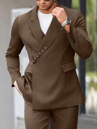 VestirFuruyal Men's 2-Piece Suit Jacket, Solid Color Suit Jacket Tie Set, Long Sleeve, Double-Breasted Slim Fit Single-Breasted, Suitable For Travel, Wedding, Party, Business, Prom, Navy Blue, Size XS-3XL