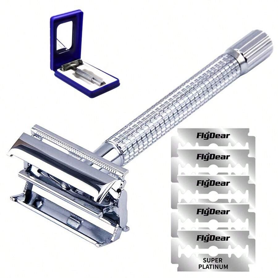 Men'S Double-Sided Stainless Steel Manual Razor Non-Slip With Strong Handle Butterfly Quick Blade Replacement With,Gift Razor Blade Holder Box