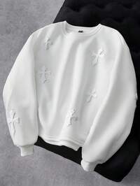 Manfinity EMRGManfinity EMRG Men's Street-Style Popular INS Matching Cross Full Embroidery Sweatshirt, Suitable For Music Festivals, Nightclubs, Bars, Boyfriend/Husband Gifts, Anniversary Gifts, White Crew Neck , White Sweatshirt , Cross Sweatshirt , Graphic Sweatshirt , Embroidered Sweatshirt , Cross Embroidered Sweatshirt, Fall Winter #3 Bestseller