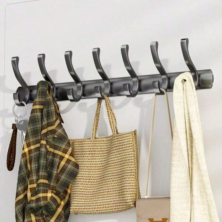Multi-Functional Wall-Mounted Coat Rack, Available In 3, 4, 5, 6 Or 7 Hooks, No Drilling Required. Over-The-Door Hanging Coat And Hat Rack, Made Of Metal With Hooks. Can Be Hung On The Back Of The Door For Storing Hats, Keys And Other Items, Saving Space. Suitable For Entryway, Bathroom, Bedroom, Home, Dorm And More. Can Be Used To Hang Coats, Hats, Jackets, Clothes, Bathroom Supplies, Etc.