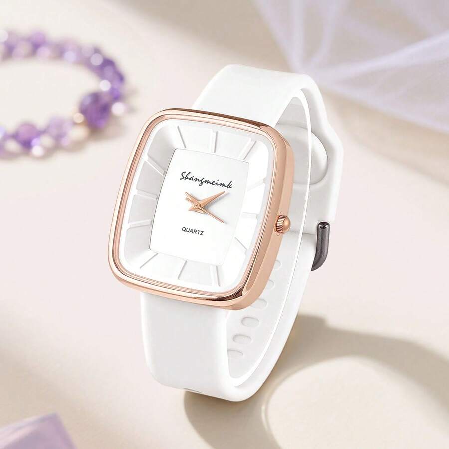 New Elegant Ladies Candy Color Silicone Strap Quartz Wrist Watch, Rectangular Case Stick Markings, School Season Gift, Simple Casual Everyday Women/Student Watch
