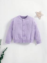 SHEIN Newborn Baby Girl Cute Cartoon Pattern Knitted Cardigan, Versatile For Autumn/Winter