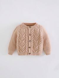 SHEIN Baby Boy Cable Knit Cardigan,In Fall/Winter