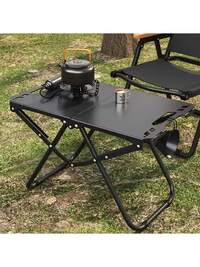 1pc Foldable Outdoor Black Round Table With Lamp Holder, Iron Frame Structure, Casual Style, Detachable Lamp Holder, Suitable For Picnic, Camping, Outdoor Gatherings, Backyard Parties, Outdoor Folding Table, Durable Multi-Functional Portable Outdoor Table, Camping Gear, Picnic Accessories, Camping Table, Folding Table, Outdoor Folding Table, Camping Equipment, Camping Essentials 3-In-1 Ultralight Folding Camping Table, Suitable For Yard, Fishing, Hiking, Picnic, Camping, Beach, BBQ, Park And More. Portable Outdoor Backpack Table & Chair Set With Storage Bag, Camping Equipment, Camping Essentials