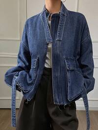 AthîralAthîral Women's Deep Indigo Denim Cape Coat | Structured Denim Fabric, Oversized Flared Cape Silhouette, Raised Stand Collar, Wide Draped Sleeves, Minimal Front Button Closure, Seamless Detailing, Unisex Street Neutral Style, Warm Autumn Winter Outerwear, Cape Top, Women Fall , Outerwear Women, Fall For Women, New Year