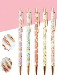 6pcs/Set Elegant Women's Ballpoint Pens, Cute Shiny Ballpoint Pens, Exquisite Gift Pens, Diary Pens, Suitable For Office, School, Valentine's Day, Thanksgiving, Graduation Ceremony, Metal Pen Tip, Round Pen Body, Fashionable Shiny Design #3 Bestseller
