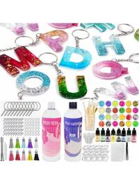 LX Creativity164/245pcs Letter Keychain Resin Mold Kit, Reversible Letter & Number Silicone Mold, Epoxy Resin Casting Mold For Keychain Making, Includes 1 Hand Drill, 2 Drill Bits, 30 Keyring, 100 Screws, Random Mica Powder, Glitter, Coloring, Silicone Dropper, Measuring Cup, Gloves, Drill Bits, Tweezers, For DIY Silicone Crafting (Simple And Premium Versions Available, Please Match Item Number And Image)