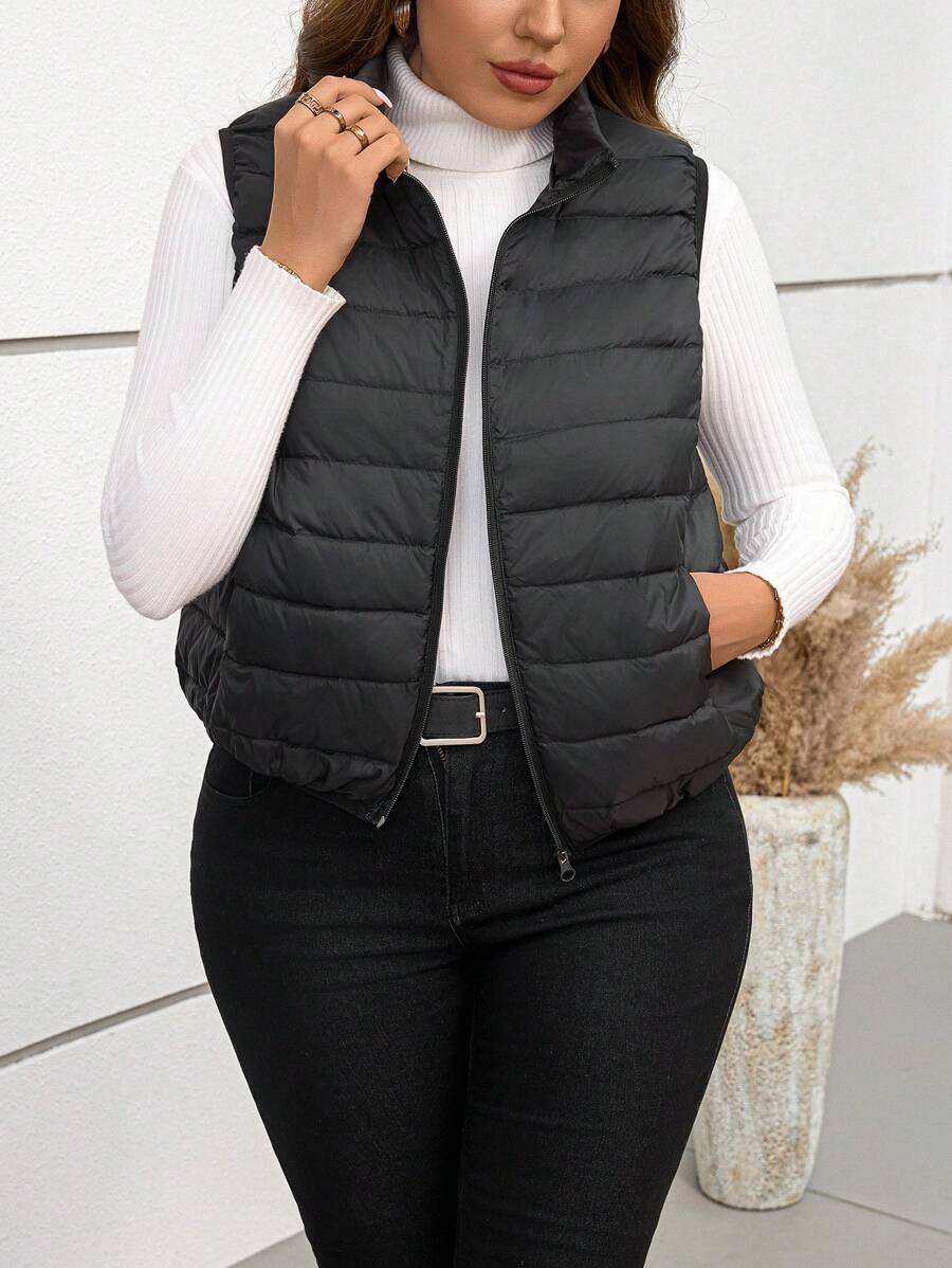 SHEIN LUNE Plus Size Lightweight Stand Collar Down Vest For Winter Down& Feathers Coat Fall Autumn