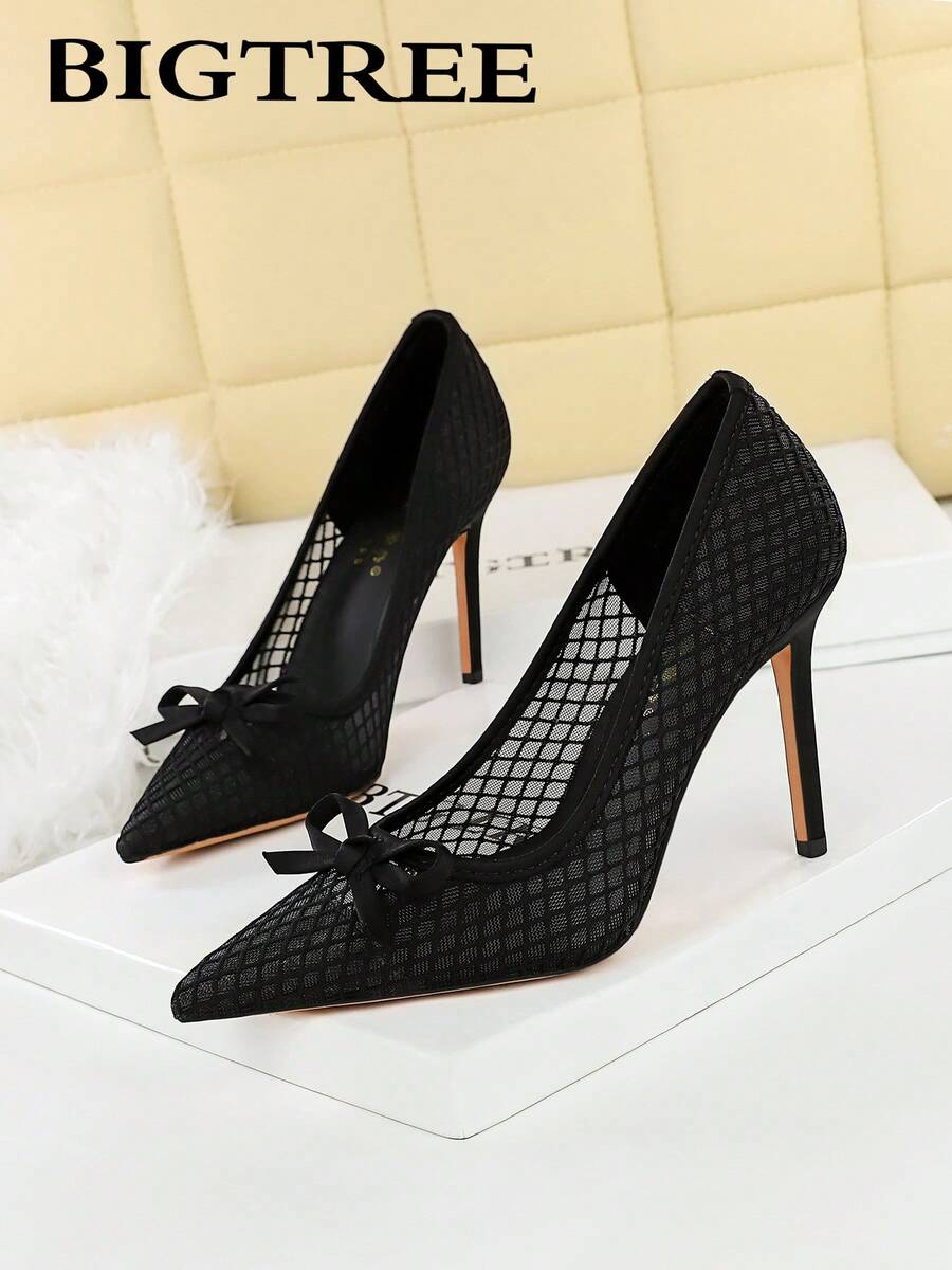 Sexy Lace Pointed Toe Mesh High Heel Pumps, Nightclub Style, Suitable For Party And Formal Occasions