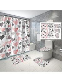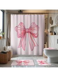 1/4 Pcs Pink Heart & Bow Bathroom Set, Includes Shower Curtain, Bath Mat, U-Shaped Toilet Seat Cover, Toilet Lid Cover, Waterproof, Shower Curtain, Fashion Curtain, Modern Style Bathroom Partition, No Drilling Required, Polyester, Machine Washable Bathroom Decor #1 Bestseller