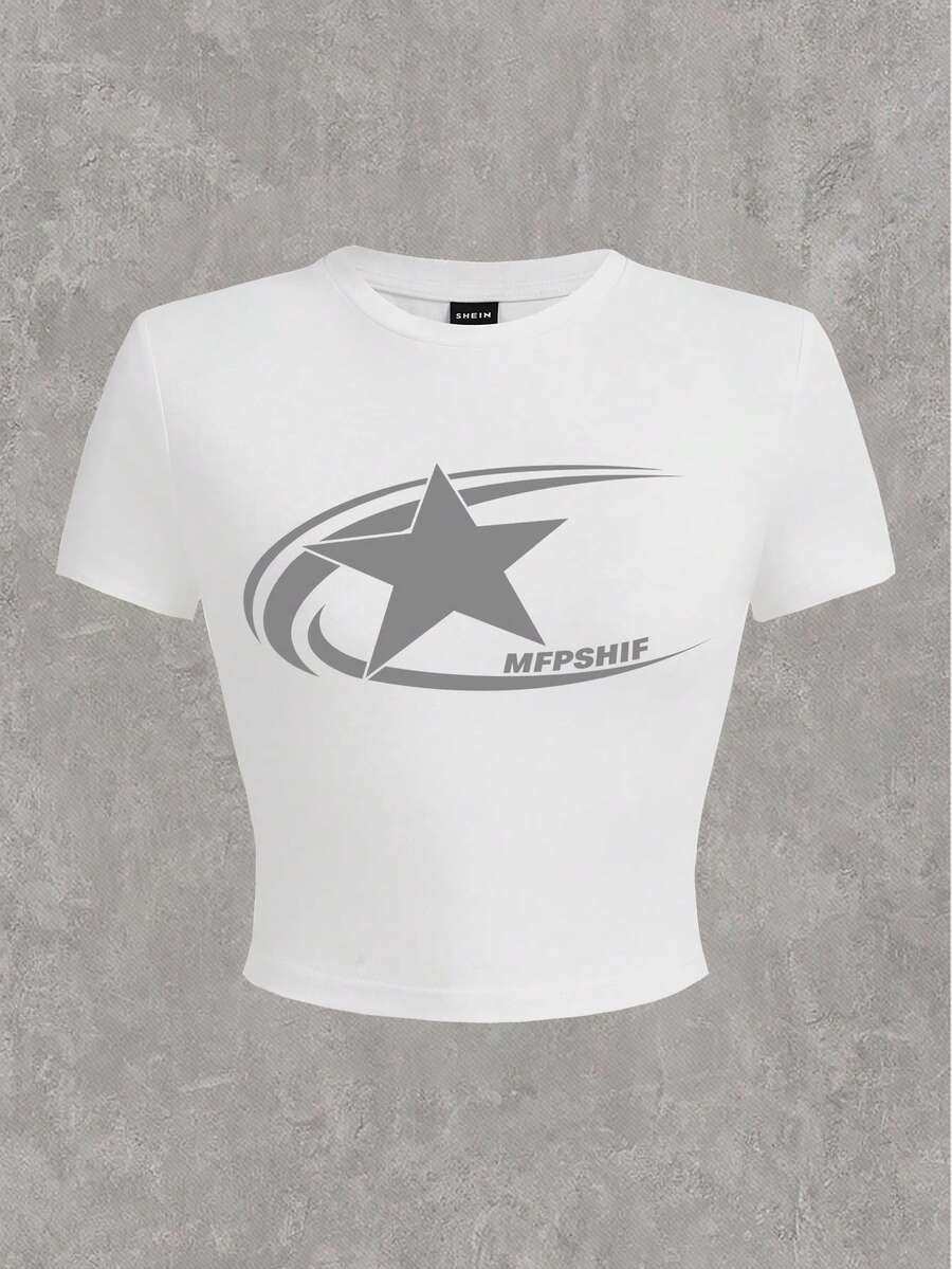 SHEIN Coolane Star Pattern Round Neck Short Sleeve Slim Fit T-Shirt