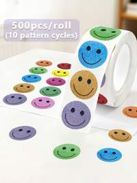500pcs/Roll Cartoon Yellow Face Stickers, 1 Inch & 1.5 Inch, Teacher Reward & Student Encouragement, Suitable For Stationery, Books, Phones, Laptops, Helmets, Water Bottles, Glasses, Multipurpose, Waterproof PVC Vinyl Stickers,School Supplies,Back To School #1 Bestseller