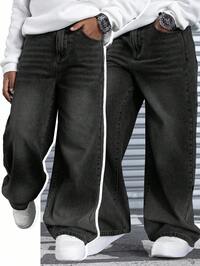 UNPLTeen Boys Jeans, Mid-Blue Denim, Casual College Style, Outdoor Bold Personalized, Loose & Comfortable, Multi-Pocket Design, Soft Cotton, Suitable For Daily Wear, School, Commute, Party, Back To School Season #1 Bestseller