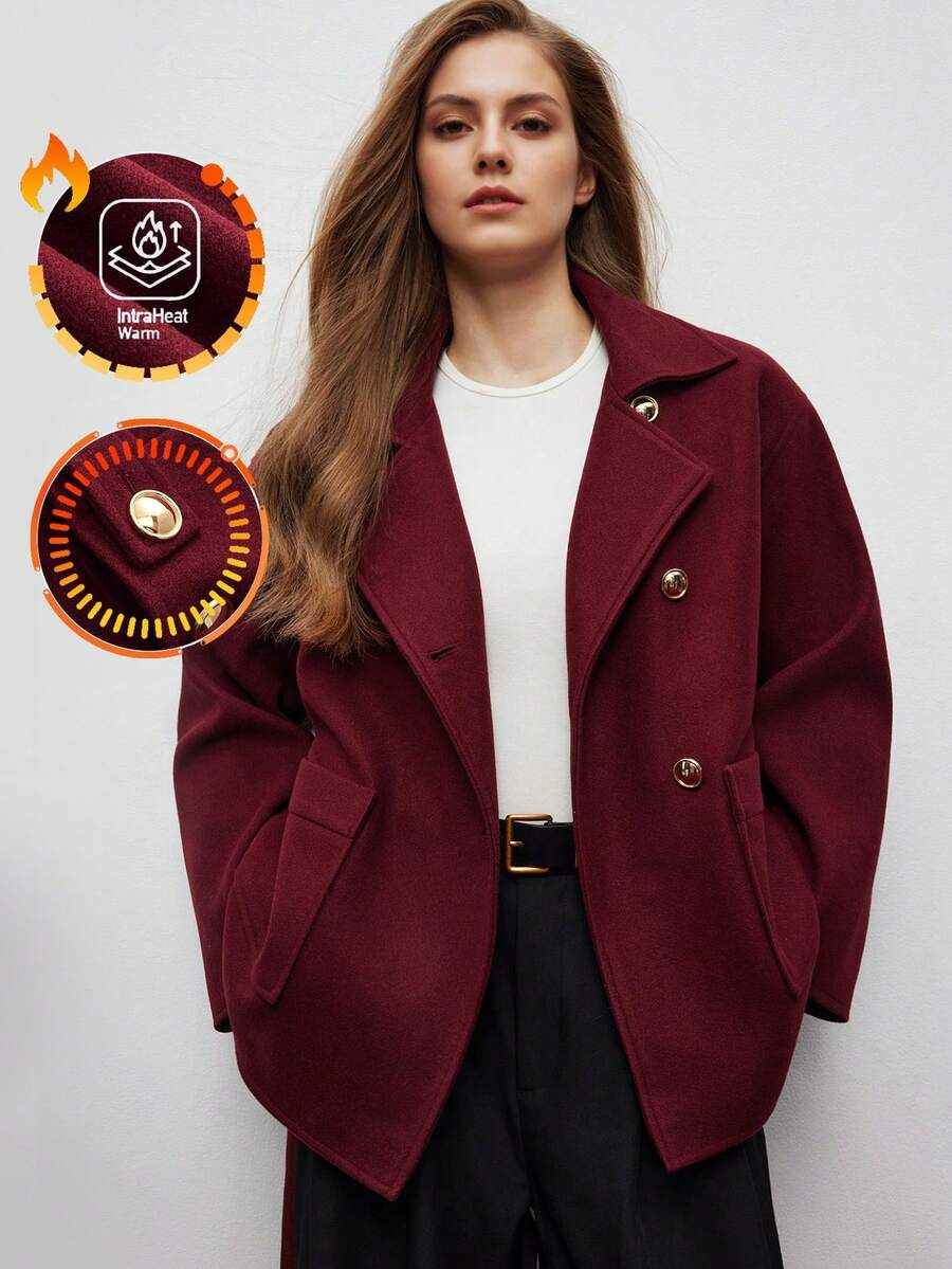Maija Women's Casual & Commute Elegant Solid Color Christmas High Neck Single-Breasted Belted Overcoat, Autumn/Winter, Women's Winter Coat , Christmas Clothes For Women, New Year Women, Party Outfit High Collar With Metal Buckle Design Belt Included Exquisite And Practical