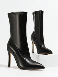 Miss MiWomen's Classic Black Pointed Toe Thick High Heel Ankle Boots, Fashionable, Versatile, Elegant, Ladder Design, Non-Slip Sole, Suitable For Halloween, Wedding, Holiday Season, Autumn/Winter,Party #4 Bestseller