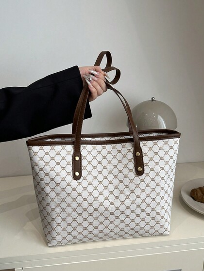 New Vintage Floral Print Women's Tote Bag, Large Capacity Ultra-Light Rivet Decor, Suitable For Commuting, Shopping, Office, University