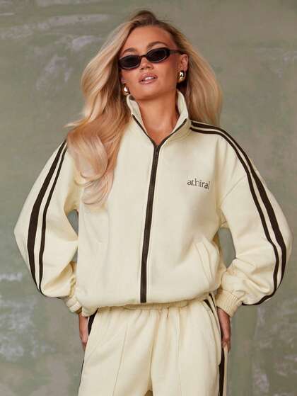 Athîral Women's Contrast Color Stand Collar Zipper Long Sleeve Dropped Shoulder Casual Versatile Jacket